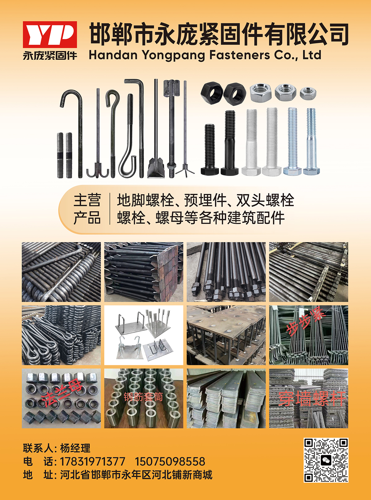 主营:现货穿墙丝、三段式止水螺杆、梯形扣、丝杠、山型件、山型母、法兰母、步步紧、模板卡勾、扣件、丁字丝、钢管接头、顶托、塑料椎体母、钢筋套筒、铁马凳楼梯护角、...
