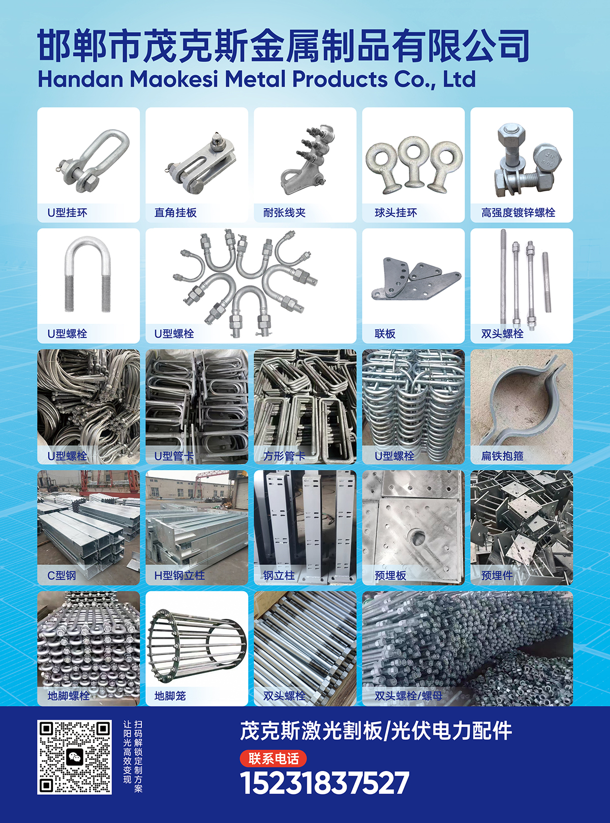 U型丝、光伏U型螺栓及配套压板、光伏导电片、不锈钢穿刺垫片、内、外六角螺栓、光伏支架、锌镁铝水槽、方管、光伏小黄线、光伏黑红线、光伏底座、三角连接件、直连接件、...