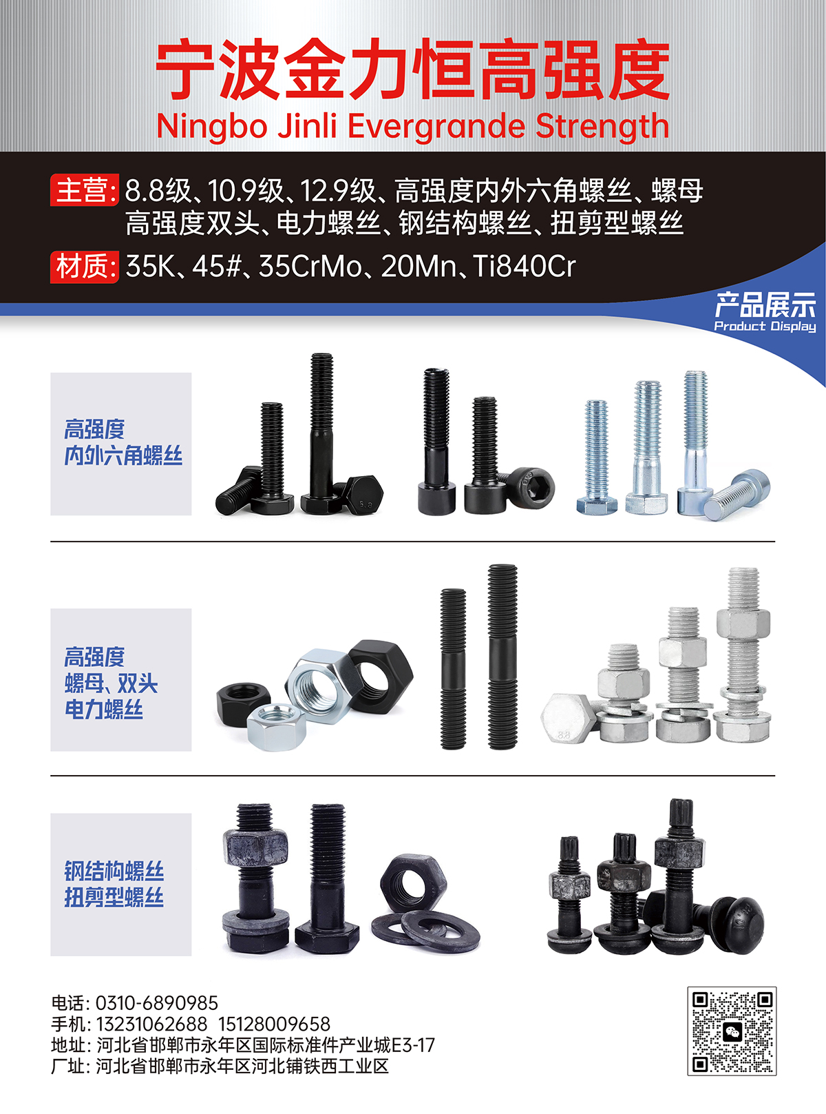 主营:8.8级、10.9级、12.9级、高强度内外六角螺丝、螺母、高强度双头、电力螺丝、钢结构螺丝、扭剪型螺丝