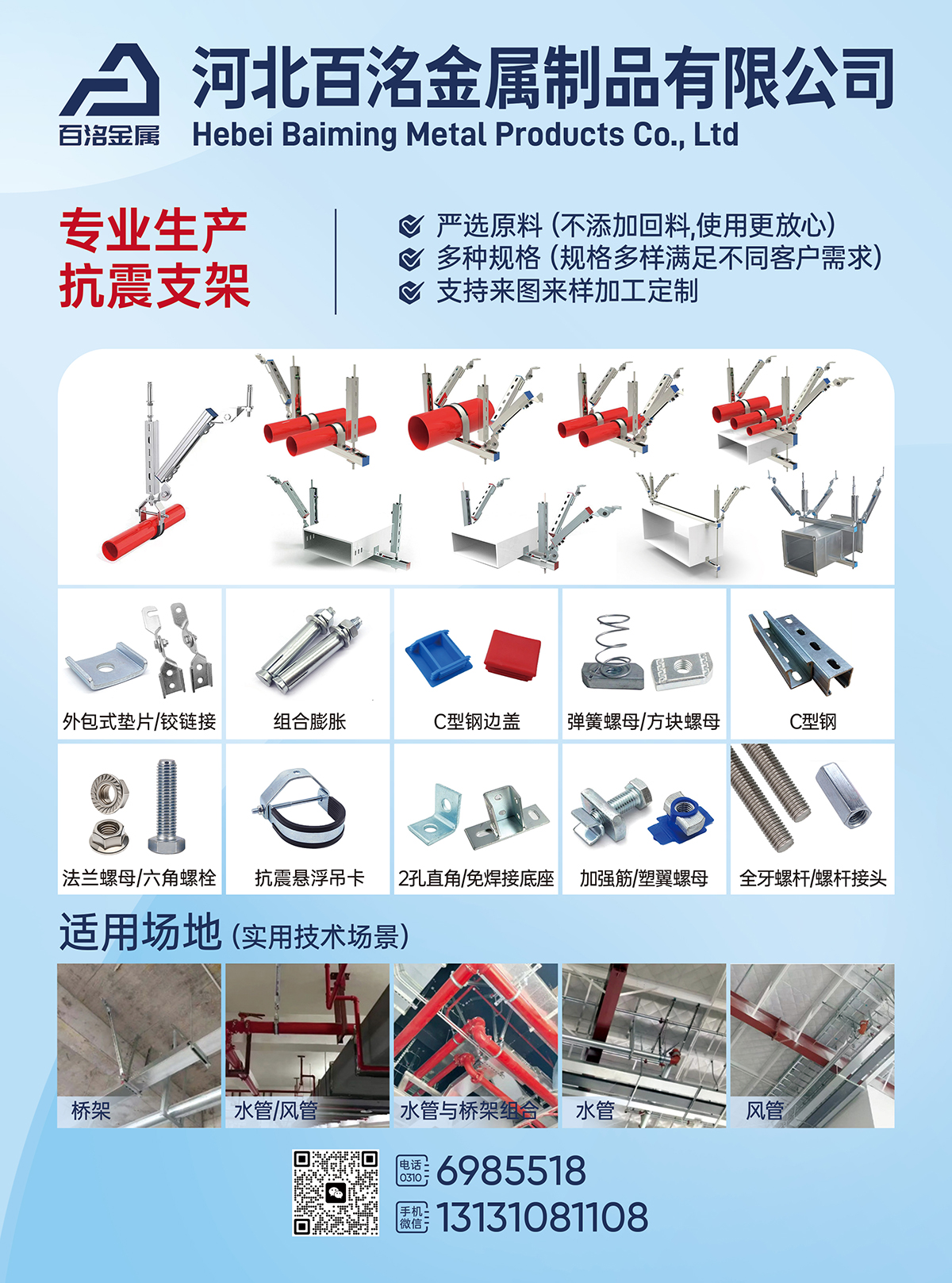 抗震支架、外包式垫片、铰链接、组合膨胀、C型钢边盖、弹簧螺母、方块螺母、C型钢、法兰螺母、六角螺栓、抗震悬浮吊卡、2孔直角、免焊接底座、加强筋、塑翼螺母、全牙螺杆、螺杆接头