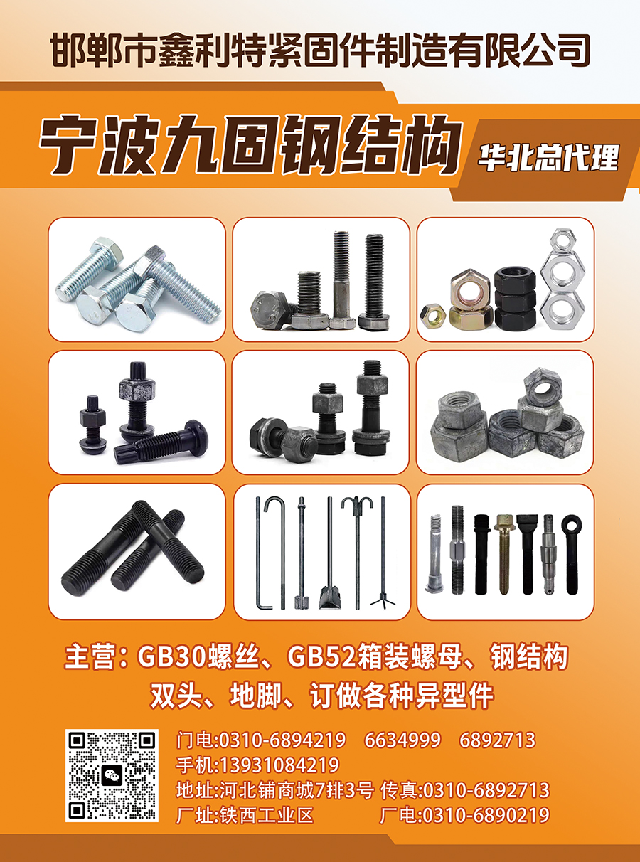 主营:GB30螺丝、GB52箱装螺母、钢结构、 双头、地脚、订做各种异型件