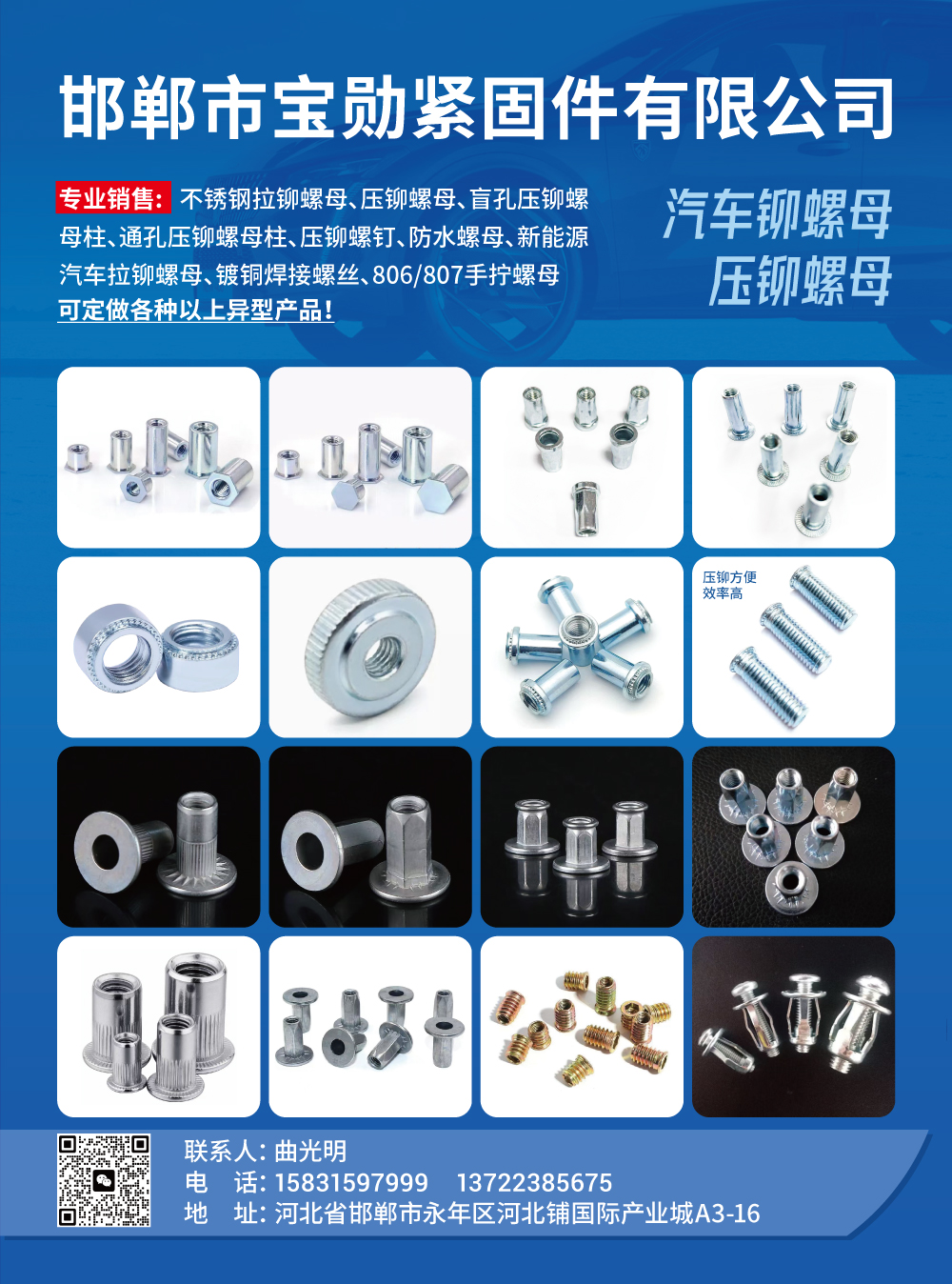不锈钢拉铆螺母、压铆螺母、盲孔压铆螺母柱、通孔压铆螺母柱、压铆螺钉、防水螺母、新能源汽车拉铆螺母、镀铜焊接螺丝、806/807手拧螺母,可定做各种以上异型产品!