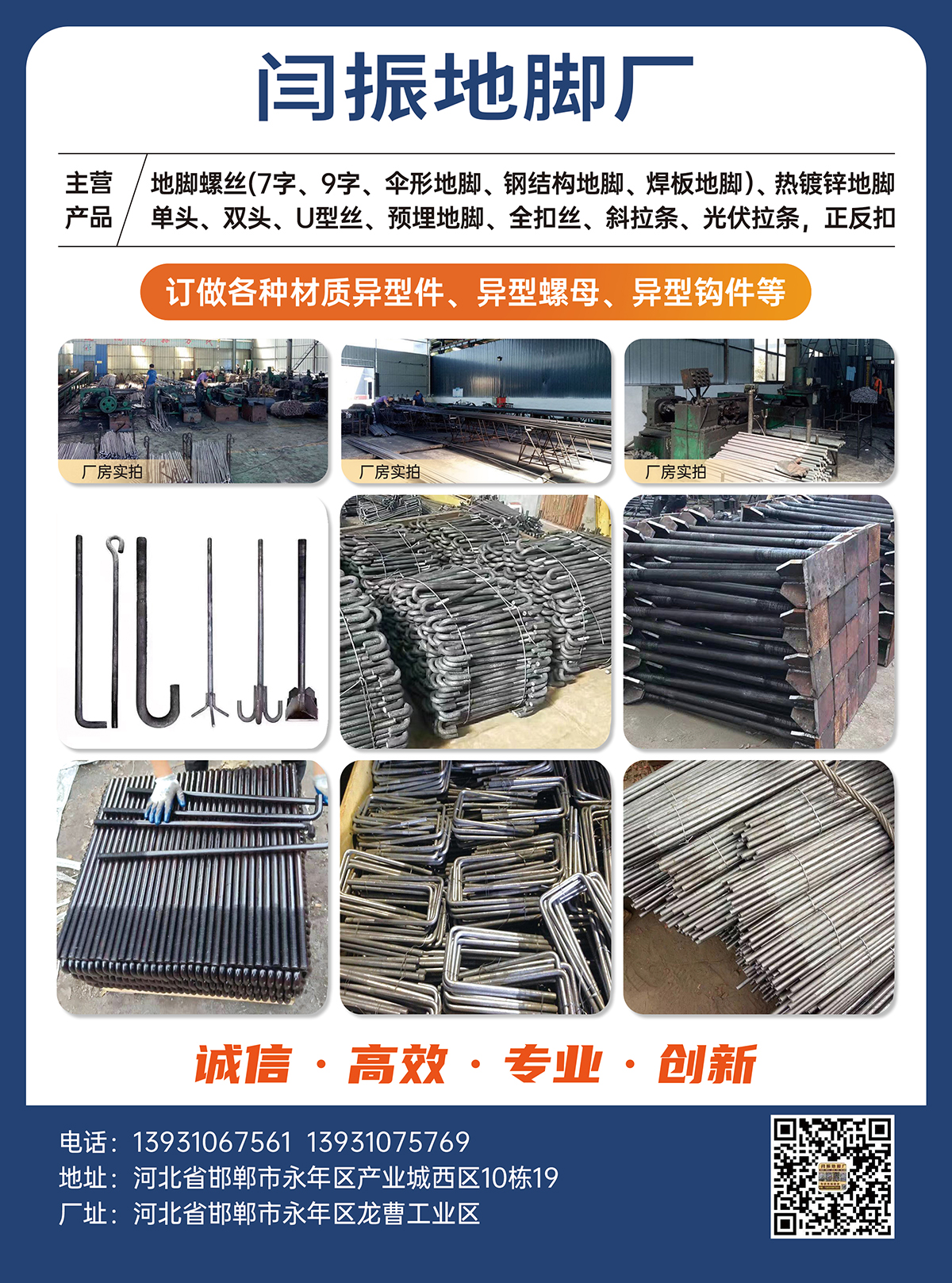 地脚螺丝(7字、9字、伞形地脚、钢结构地脚、焊板地脚﹚、热镀锌地脚单头、双头、U型丝、预埋地脚、全扣丝、斜拉条、光伏拉条,正反扣,订做各种材质异型件、异型螺母、异型钩件等