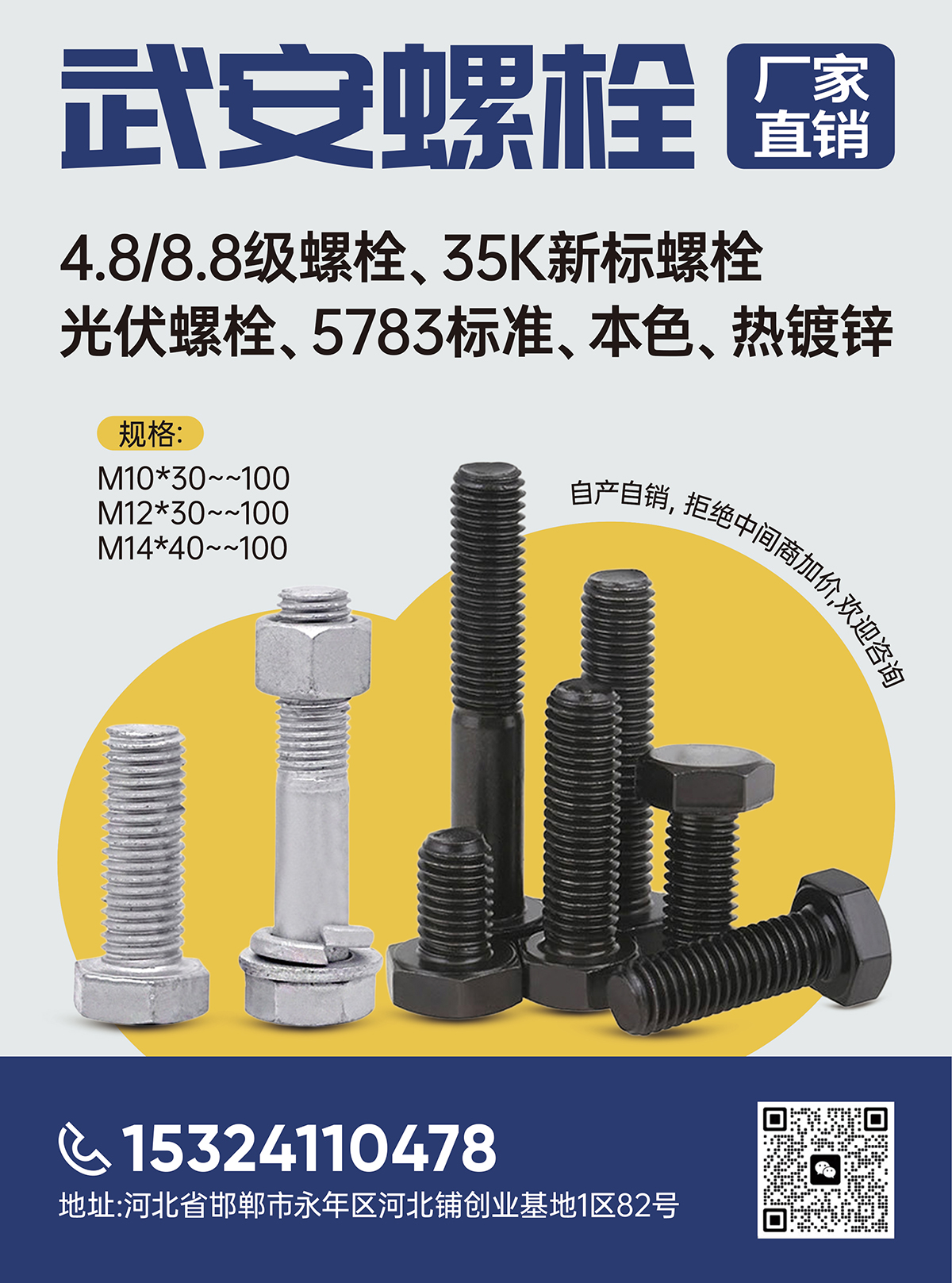 4.8/8.8级螺栓、35K新标螺栓光伏螺栓、5783标准、本色、热镀锌