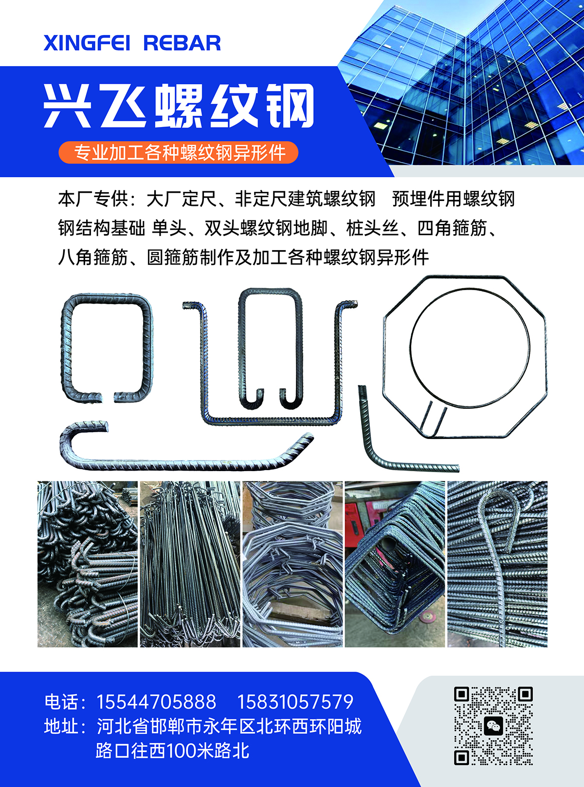 专业加工各种螺纹钢异形件。本厂专供:大厂定尺、非定尺建筑螺纹钢预埋件用螺纹钢钢结构基础单头、双头螺纹钢地脚、桩头丝、四角箍筋、八角箍筋、圆箍筋制作...