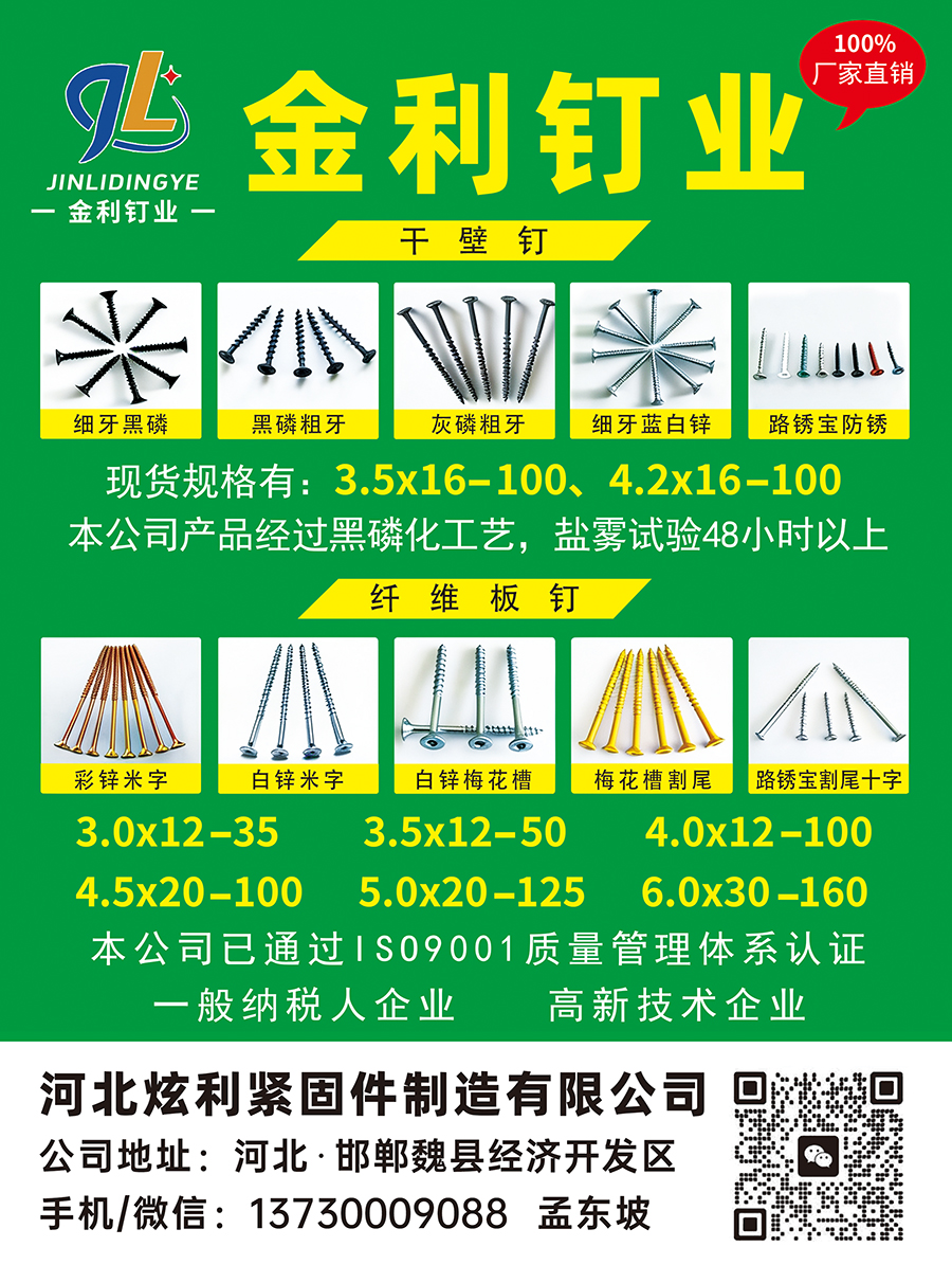 干壁钉:细牙黑磷、黑磷粗牙、灰磷粗牙、细牙蓝白锌
