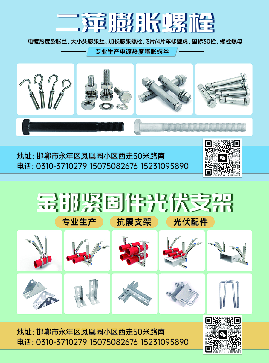 电镀热度膨胀丝、大小头膨胀丝、加长膨胀螺栓、3片/4片车修壁虎、国标30栓、螺栓螺母。专业生产电镀热度膨胀螺丝。抗震支架、光伏配件。